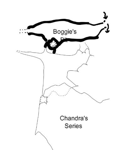 Reunited with Joe (who remembered the bag on attempt two), we carried on into the Chandra Series, a long run of small chambers, muddy squeezes, and boulder chokes. The mud here is unreal. I slipped constantly, bashing elbows and shins galore. At one choke, Jon gave me the gentle reminder to hug the back and the right-hand walls to avoid collapse or “you’d be flattened, and we’d be stuck”. Nothing like the risk of collapse to sharpen focus. I eased myself down like I was playing life-or-death Jenga while being lubed up in mud.
