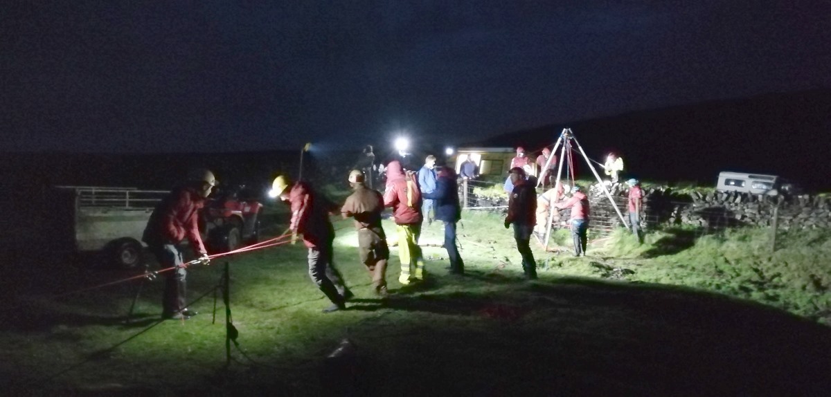 Fortunately DCRO had already got a call from the farmer and were on their way. With plenty of impressively clean kit and well verse techniques they extracted the animal easily, whilst me n the lads (who had returned quickly after running out of rope) judged their slick methods, took photos and discussed the return trip what the major find Jeff reported…