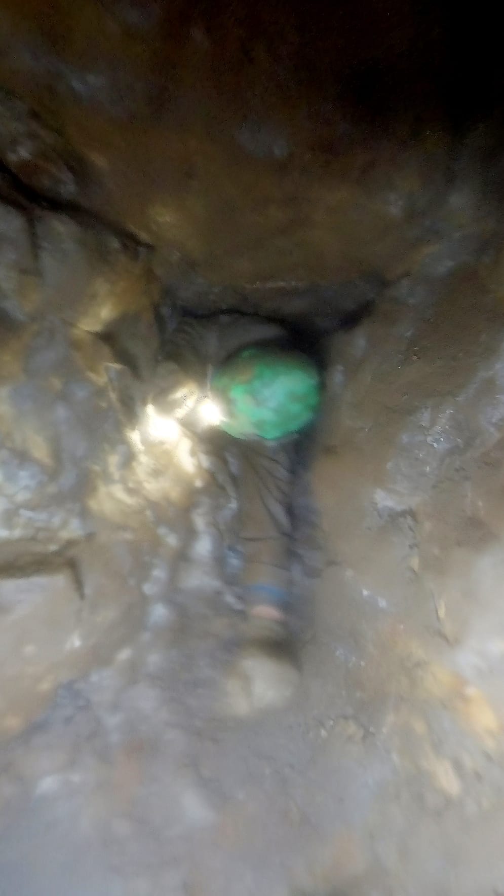 Whilst Chris was at the dig face and me supporting at the rear by stacking broken boulders into every possible gap to ensure we have an easy access/egress, I frequently looked down into the sump pool and was toying with the idea of just going for a push through and meet the other guys to say Hi.