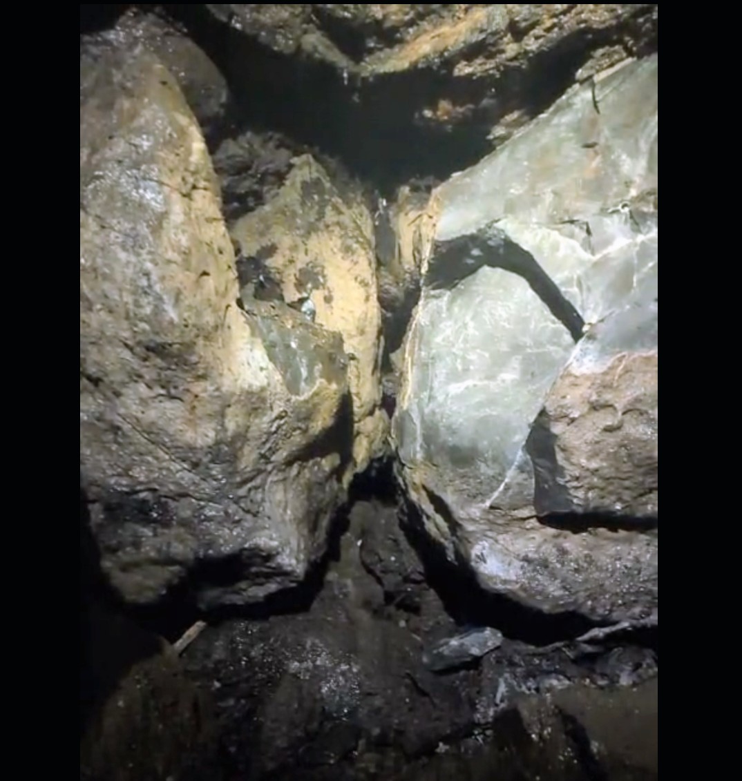 Now, swinging a lump hammer with your left arm overhead when you are on your left hand side, with not much room to bring it back for a full attack is surprising taxing. I was working hard hitting the bar as hard as I could to no avail. I was advised to use the T bar to rotate the rod to put the firing pins in a better position. Another swing, nothing. I was started to get annoyed now, I had taken my safety squints off and wasn’t even holding the bar properly as I swung pathetically as this rod. “BANG” came an almighty boom as the rod shot back towards me. Safe to say neither of us was expecting it and made us jump. I removed the bag however to see the most beautiful sight. I had taken a large chunk off the right hand side wall, so I collected my spoils to pass to Chris for stacking.