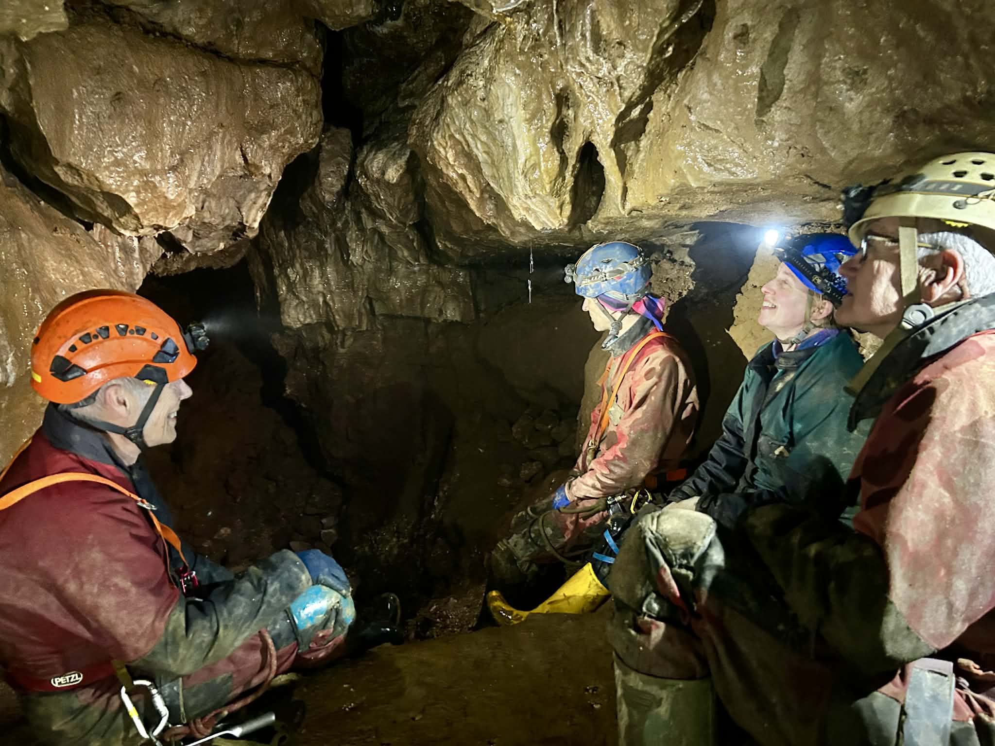 Down we went, squeezing and climbing along. After a bit of classic Hillocks stomping we reunited at the bottom, where—because it’s what cavers actually do—we immediately stopped for a chat. And then some exploring. And then more chatting.